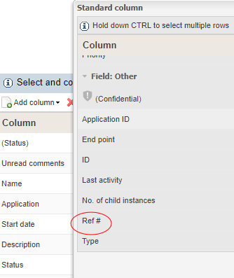 You can also show the reference numbers in a list by adding the standard column Ref #.