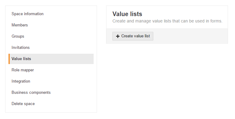 Space Administrators administer applications, value lists, groups, and lists on behalf of the Space Owner.