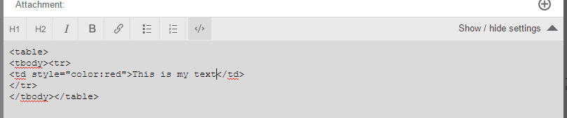 It is possible to create a custom and styled e-mail message by clicking on the Show and edit HTML button.