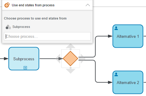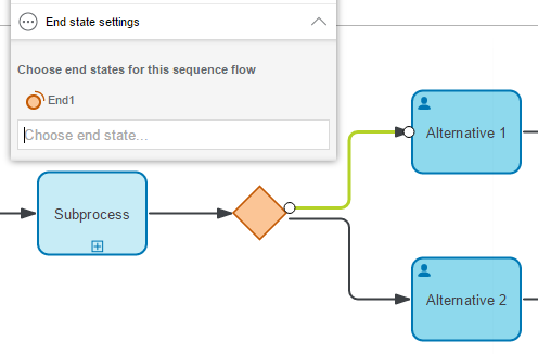 This function allows you to configure which path a gateway will direct the workflow based on which end state a previous sub process or call activity had, without writing an expression.