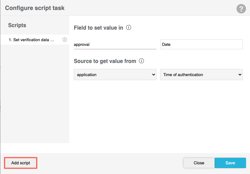 - (Optional) You need to add a script for each field you would like to use from the BankID authentication. Click on Add script and repeat steps 7-8.