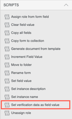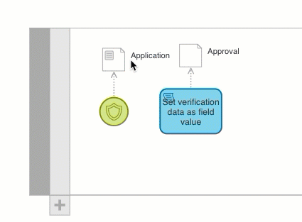 - From the asset browser, drag the script task Set verification data as field value to the modeling space.