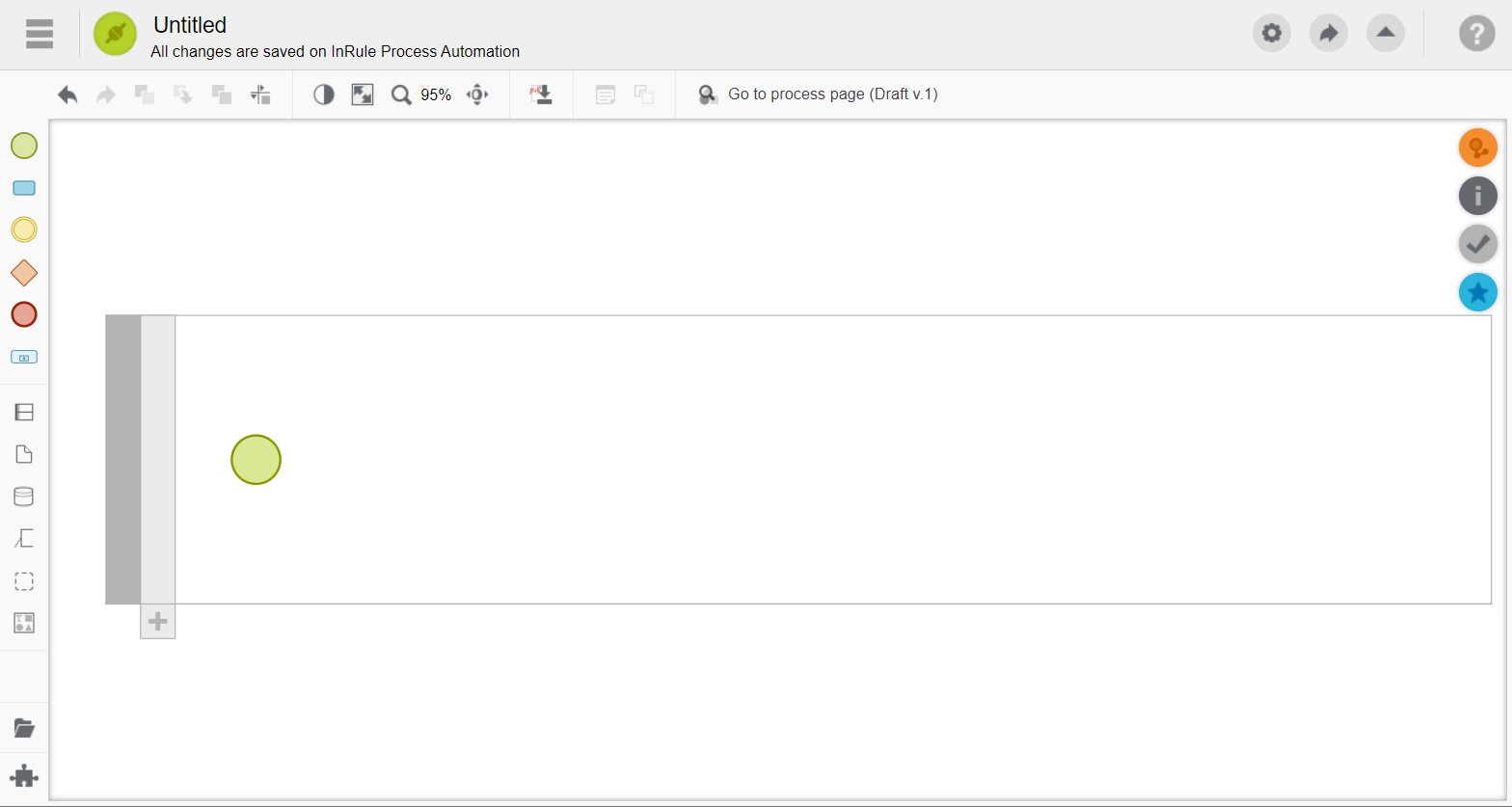 Your process is created with a pool that contains a single lane. You can start by double-clicking on the light grey area and adding a title for the role/group that initiates the process.
