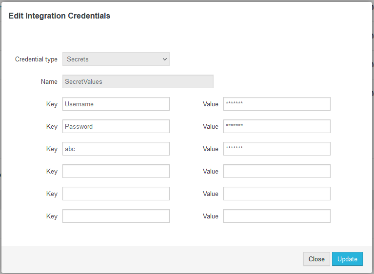 Edit integration credentials