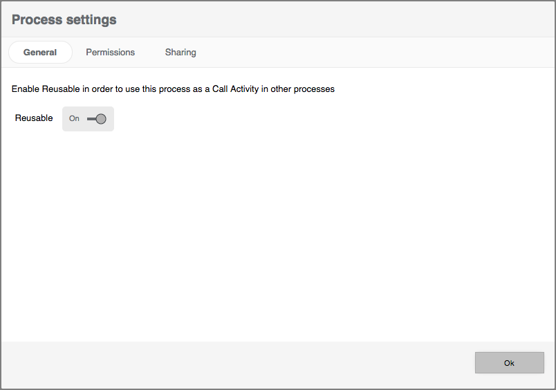 Under the General tab, you can select whether the process should be available as a Call Activity or not.