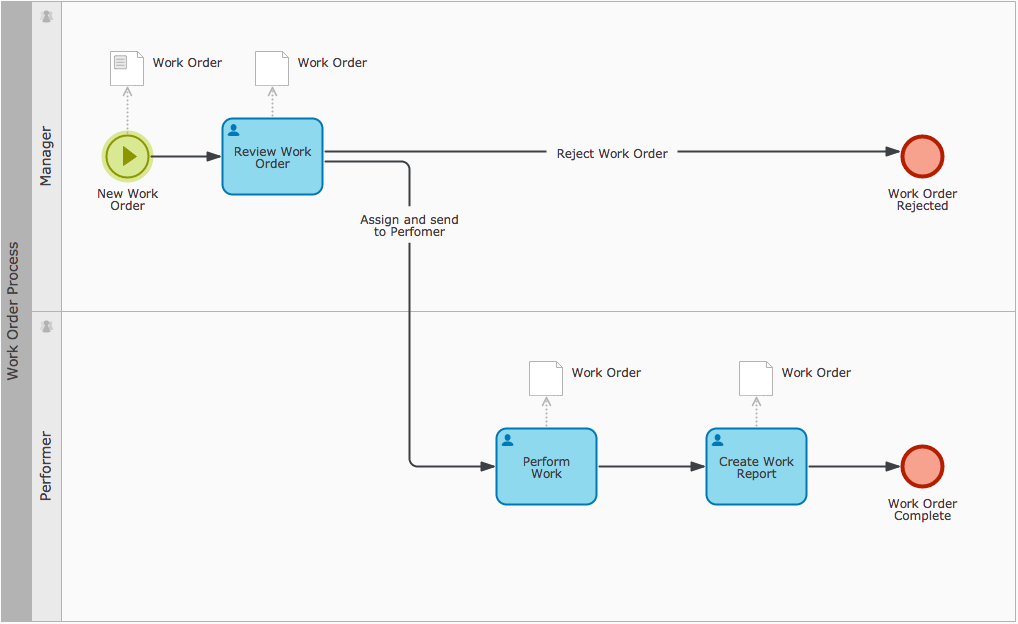 In the step called Review work order the performer can choose to send the request to a specific department. By using a Role Mapper, you filter the possible performers according to a drop-down list in your form and only the performers in this role connected to the chosen value in the drop-down receive the upcoming tasks.