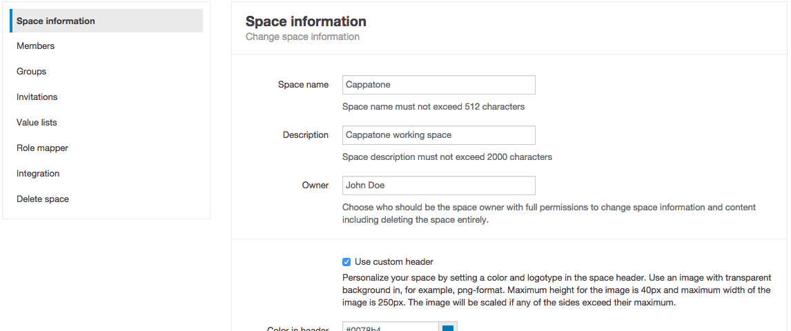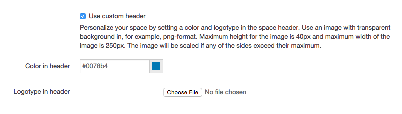 You can personalize the Space by uploading a custom logotype and choosing a custom color that will be shown in the Space header.