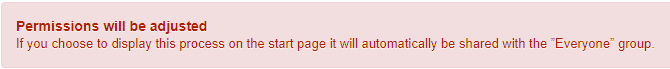 Who can see the process selected as the start page? If you choose to display a process, the process permission settings are automatically updated, to make sure that everyone within the space can see the process.