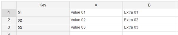 The value list has a specific display and key values for each value. The first row has e.g. display value set to "Value 01" and its key set to "01". If no key value is entered, key value and display value will be the same.